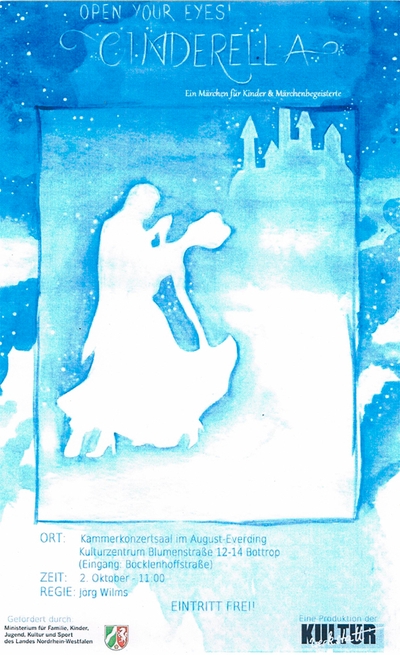 Nach verschiedenen Theaterinszenierungen für ein jugendliches Publikum hat die Kulturwerkstatt-Gruppe „OPEN YOUR EYES“ nun ein Stück für Grundschüler einstudiert: „Cinderella“. Bei der Premiere heute (2. Oktober) im Kammerkonzertsaal im Kulturzentrum August-Everding waren Schülerinnen und Schüler der Nikolaus-Gross-Grundschule die ersten Gäste. Weitere Aufführungen sollen in den nächsten Wochen noch folgen.